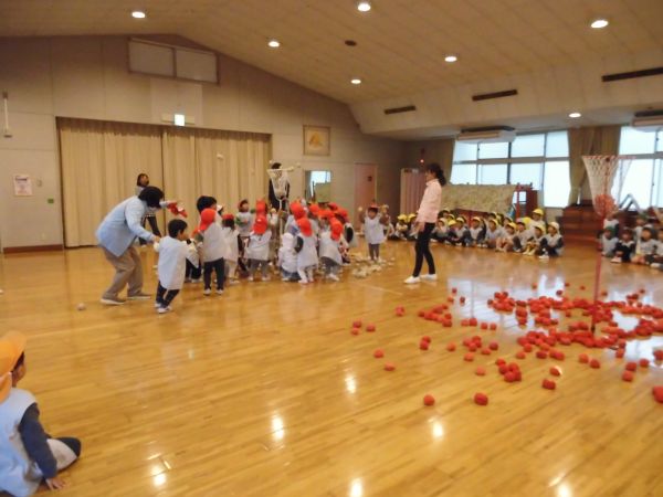 お次は・・・年少、年中さんの玉入れです。