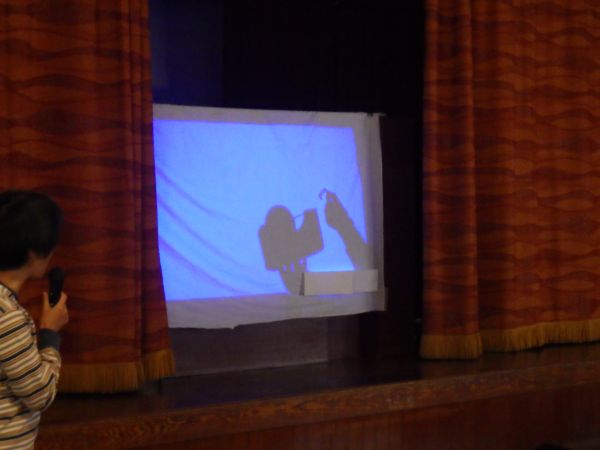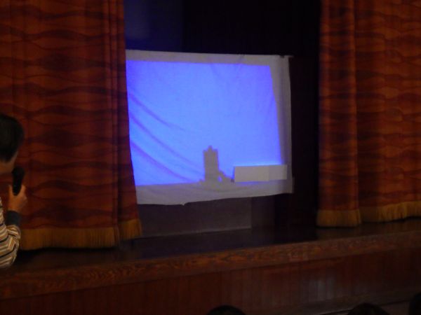 ステージの奥からライトを当てて、いろいろなものの影をスクリーンに映します。