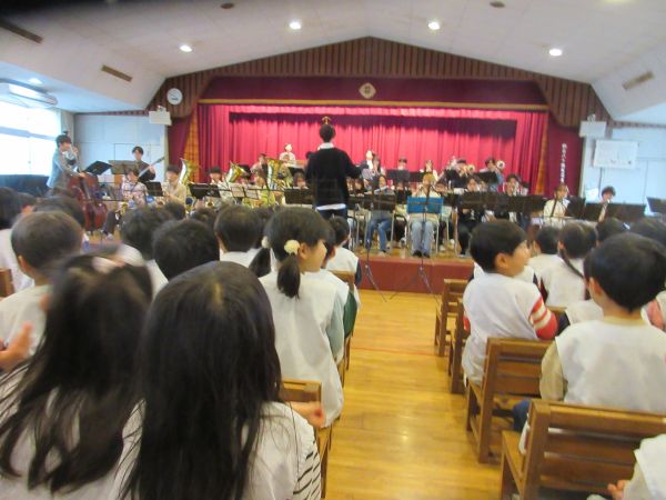お楽しみでは、千葉大学吹奏楽団の方々が演奏に来てくれました。集会室に入ると、大きな楽器や譜面台が置いてあり、いつもとは違った雰囲気に始まる前からワクワクしている様子でした。園歌やドラえもん、アンパンマンなどなど、親しみのある曲がたくさんありました。熱唱したり手拍子したりと子どもたちも大盛り上がりで、楽しい誕生会になりました!